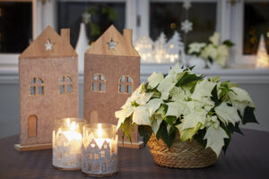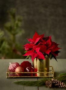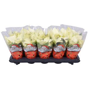 Voor de Kerstperiode zetten we Poinsettia’s op in potmaat 6 en 9. De kassen kleuren vanaf week 42 prachtig rood en wit voor de Feestdagen.