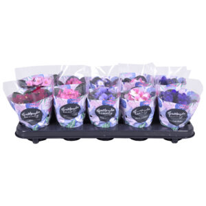 We leveren jaarrond Begonia’s en Saintpaulia’s in potmaat 9. Binnen de Begonia’s draaien we naast de Elatior vanaf week 7 t/m week 24 een aparte lijn in Sweeties. Deze Begonia is compacter en heeft kleinere bloemen. Binnen de Saintpaulia’s gaan we vanaf 2023 een exclusieve lijn draaien in samenwerking met een Exporteur.